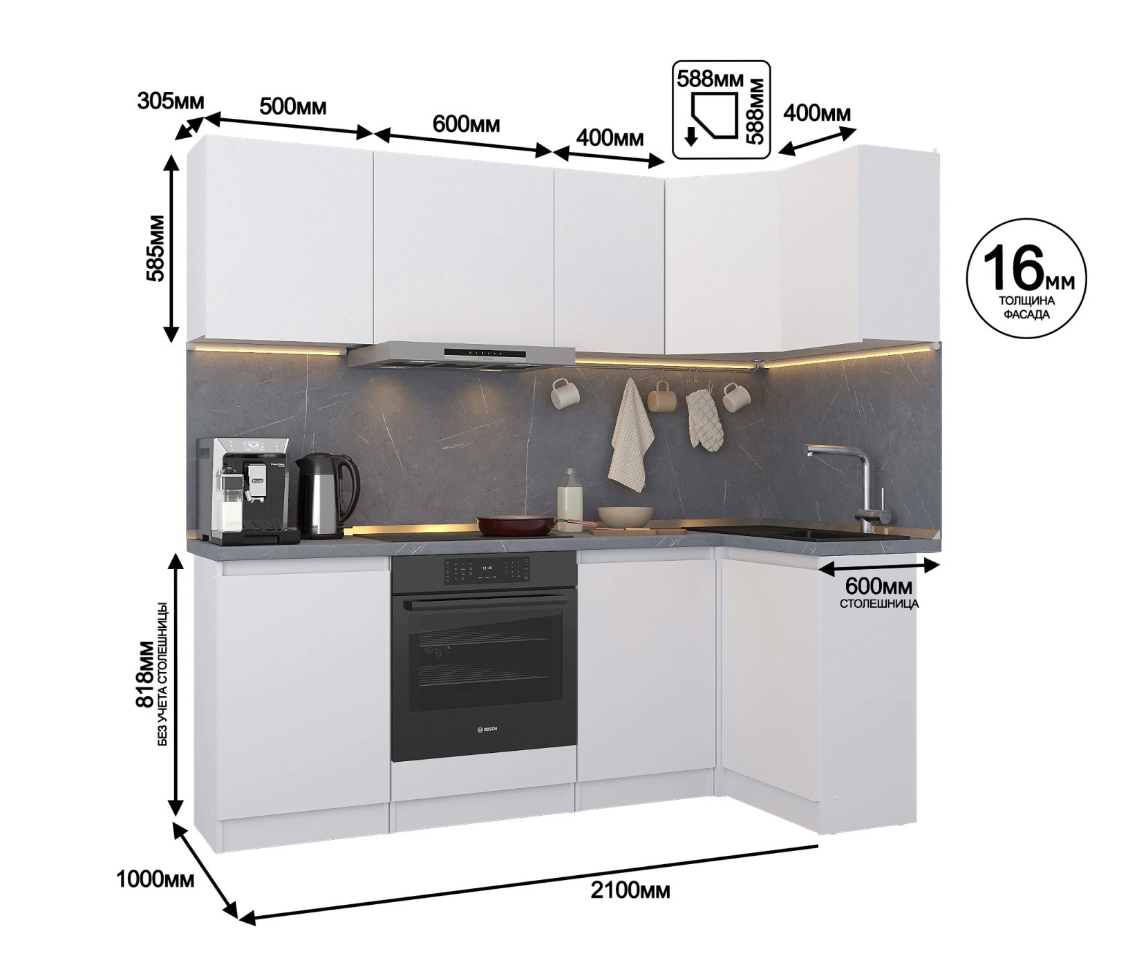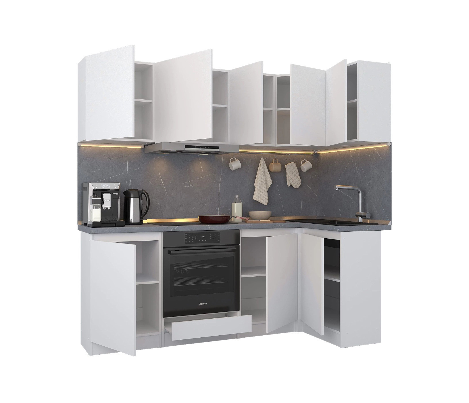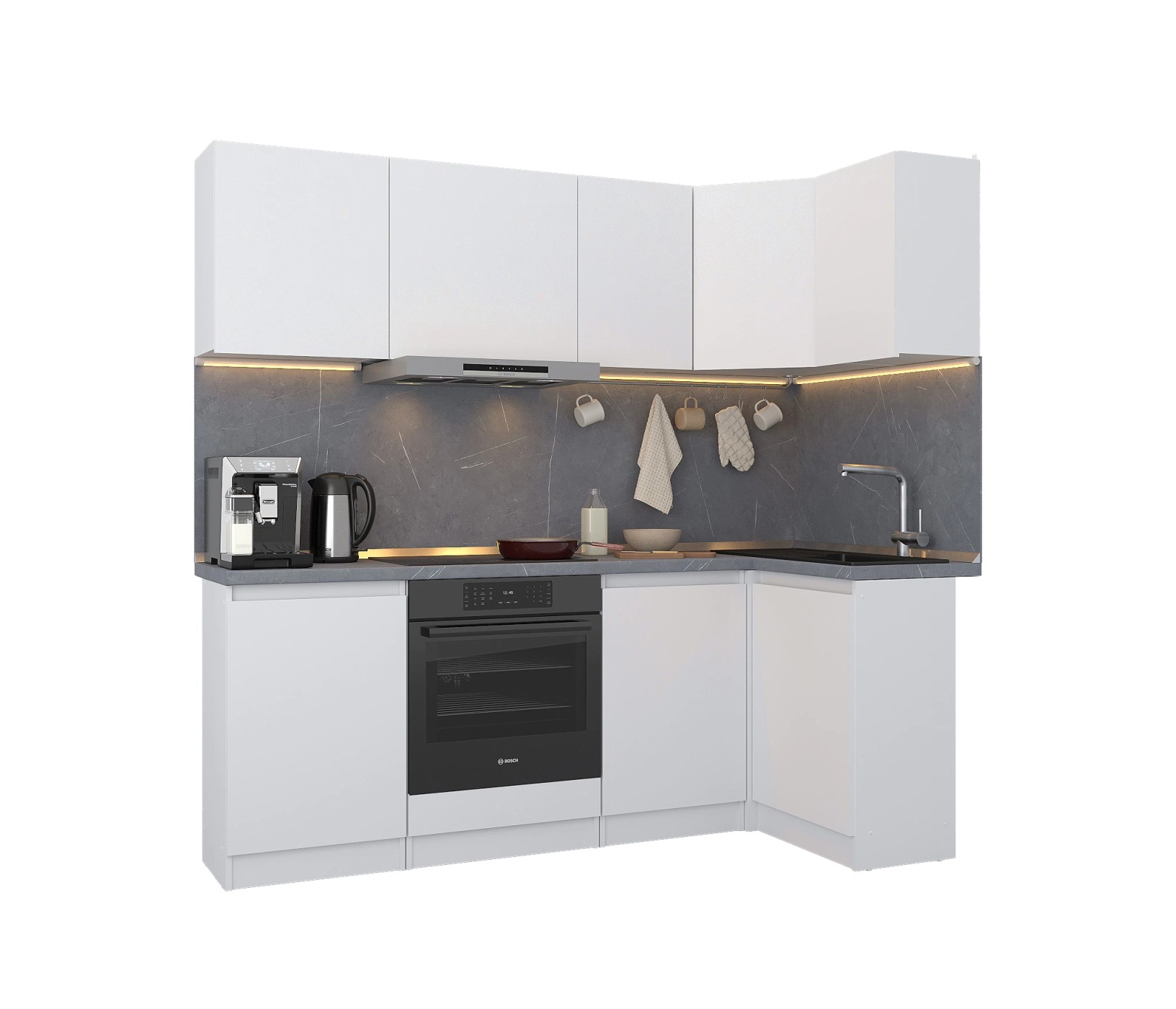 Кухонный гарнитур Леон угловой 210х100 см, белый (Белый)