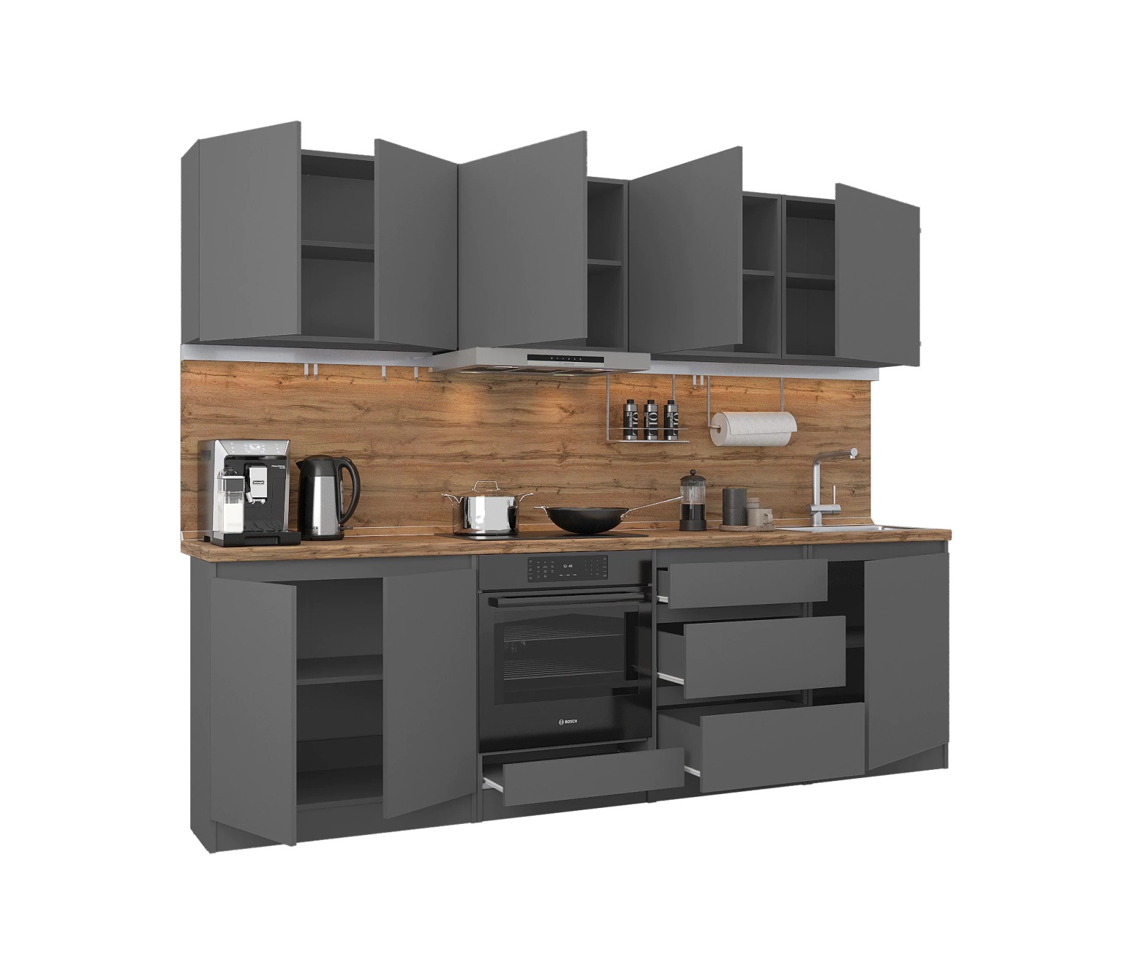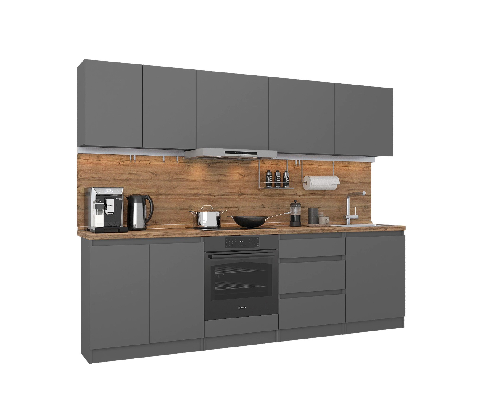 Кухонный гарнитур Леон прямой 260 см, диамант серый Код 00000334971