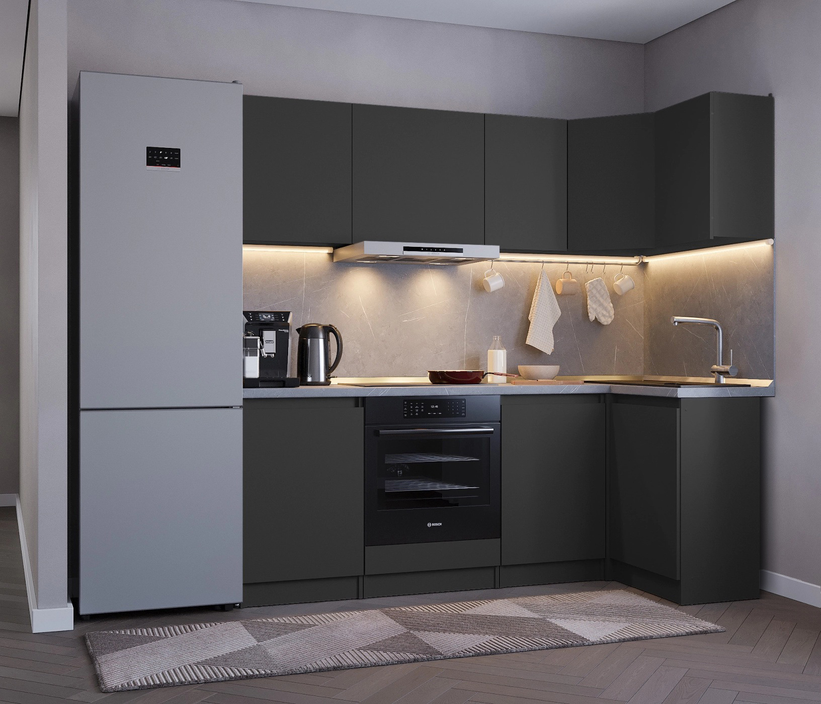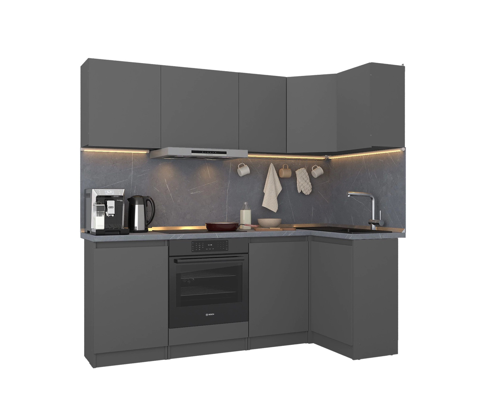 Обратите внимание, что столешница, стеновая панель, мойка и смеситель не входят в комплектацию кухни Леон и приобретаются отдельно. Это позволяет вам выбрать идеальные аксессуары и элементы для создания индивидуального дизайна вашей кухни.
