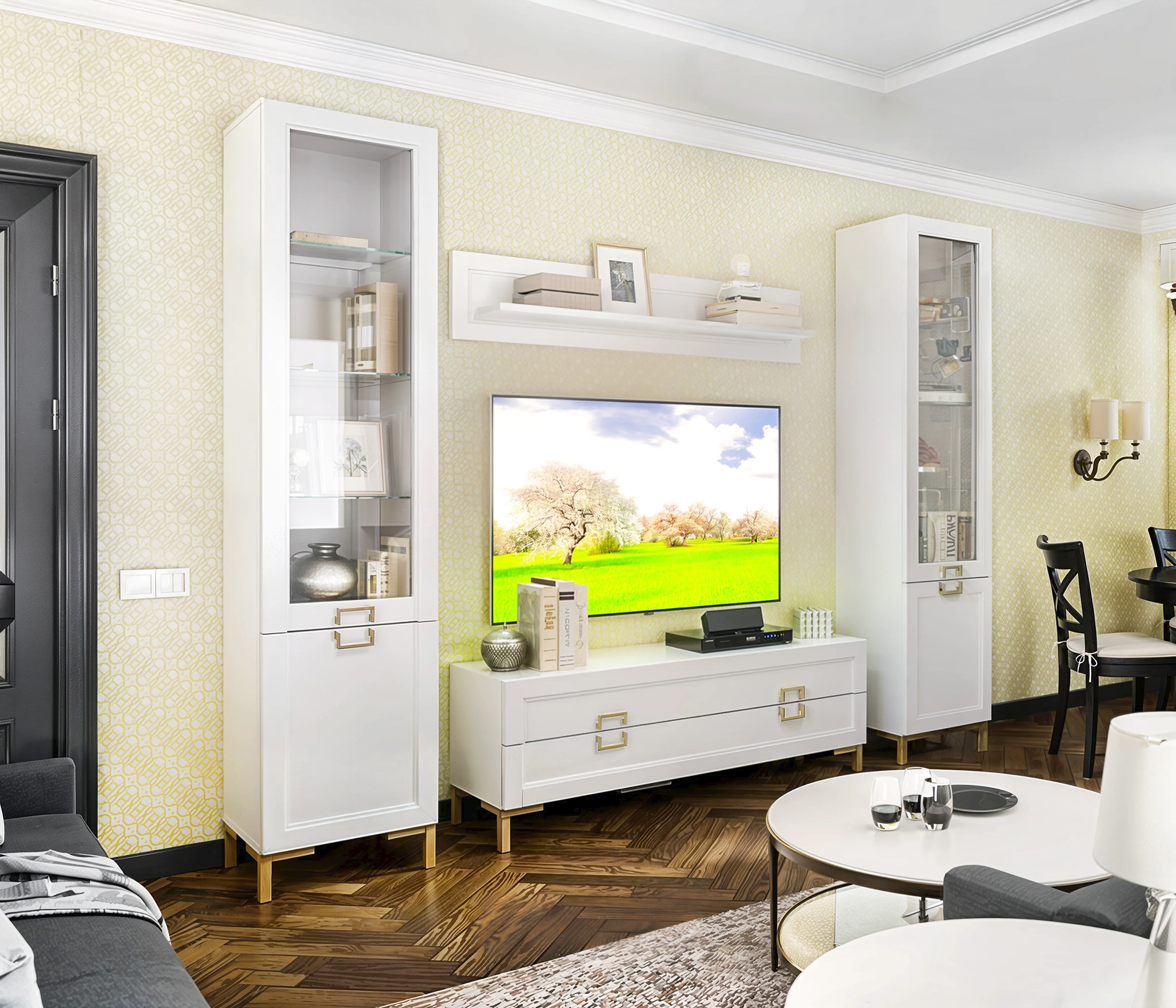 Комплект для гостиной с витринами Ассоль, Белый                                 (Белый)