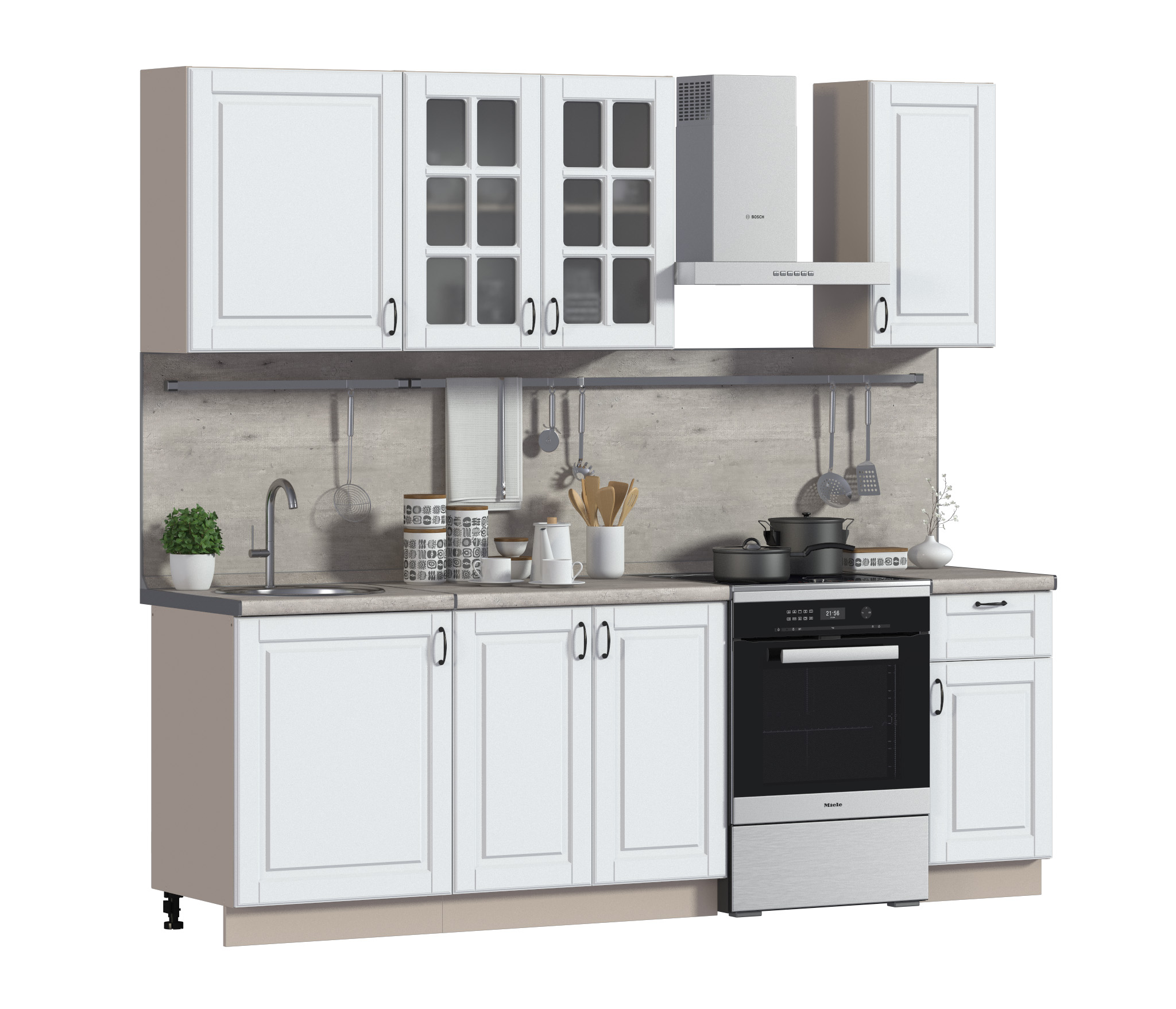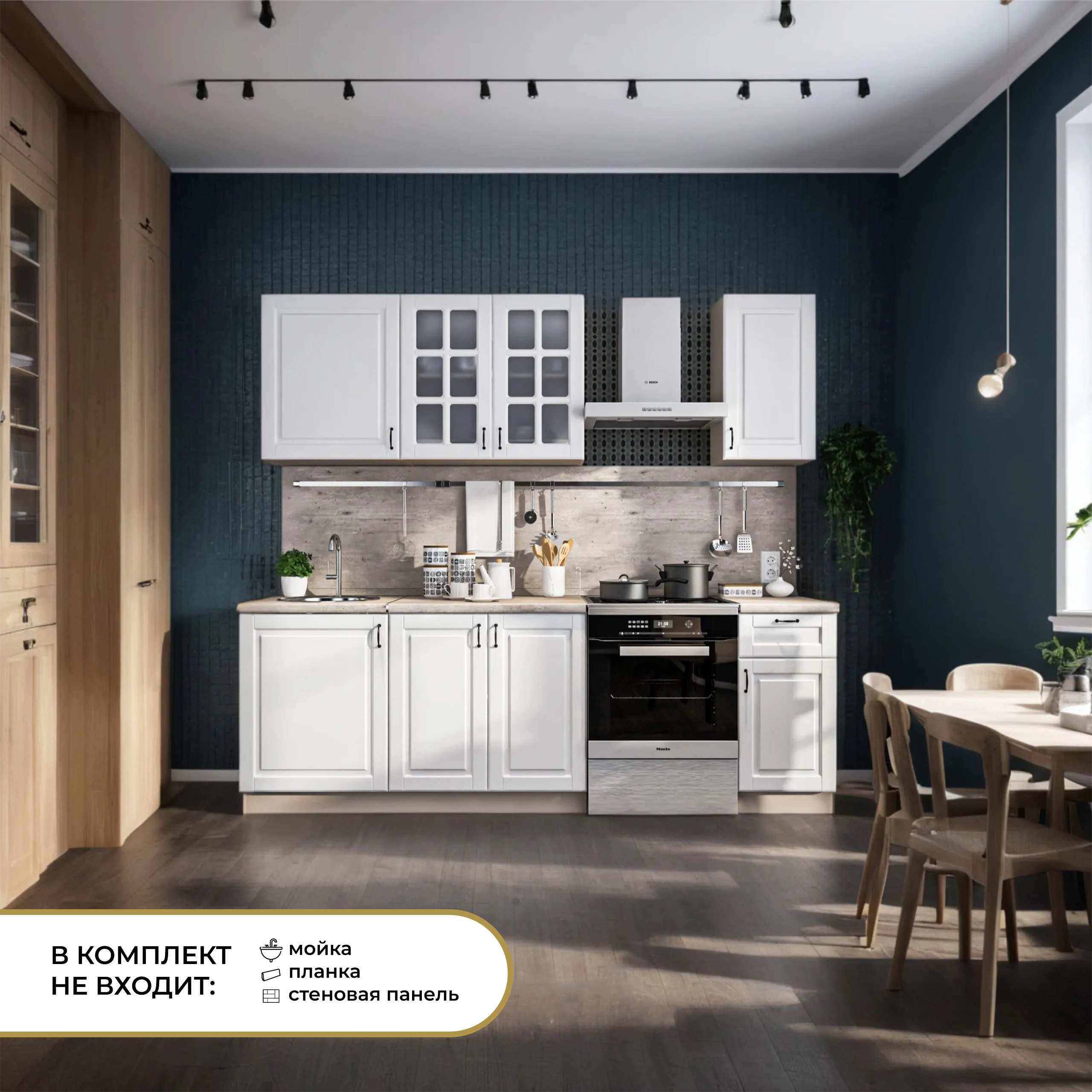 Кухонный гарнитур "Регина" размером 2400 мм — это стильное и функциональное решение для вашей кухни. Корпус выполнен из прочного ЛДСП, а фасады из белоснежного МДФ придают гарнитуру элегантный вид. В комплект входит столешница цвета Метрополитан, которая добавляет современный акцент в интерьер.