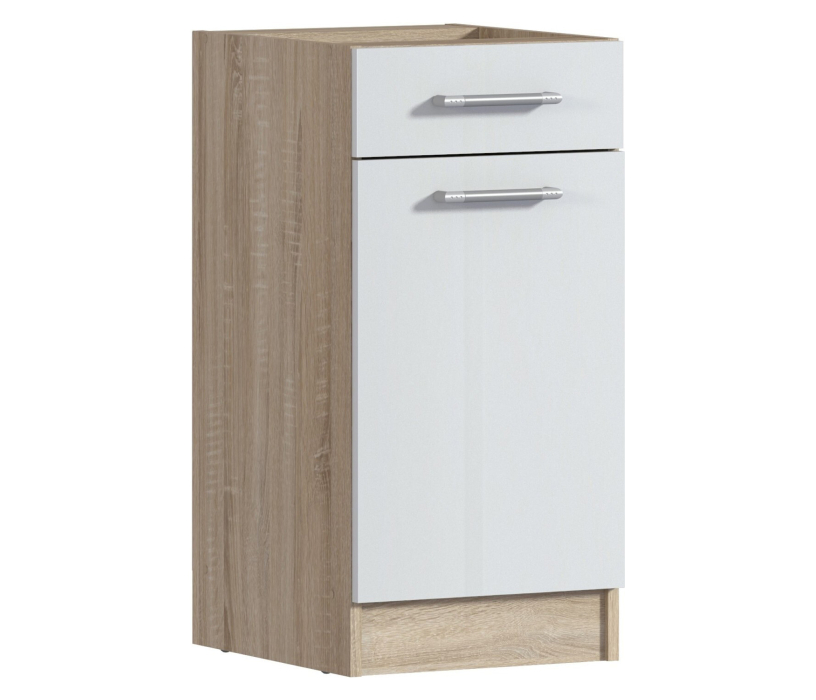 Практичный шкаф для кухни. Его можно использовать и как стол с рабочей поверхностью. У шкафа классический дизайн. В нем есть выдвижной ящик, а в отделении с дверцей — вместительные полки.