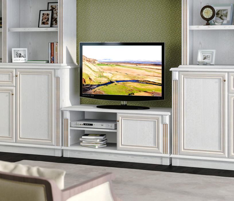 Тумба под телевизор Версаль СБ-2049 может быть стилизована в гарнитуре, а может быть автономным предметом мебели в спальне, прихожей, гостиной, кабинете или детской.