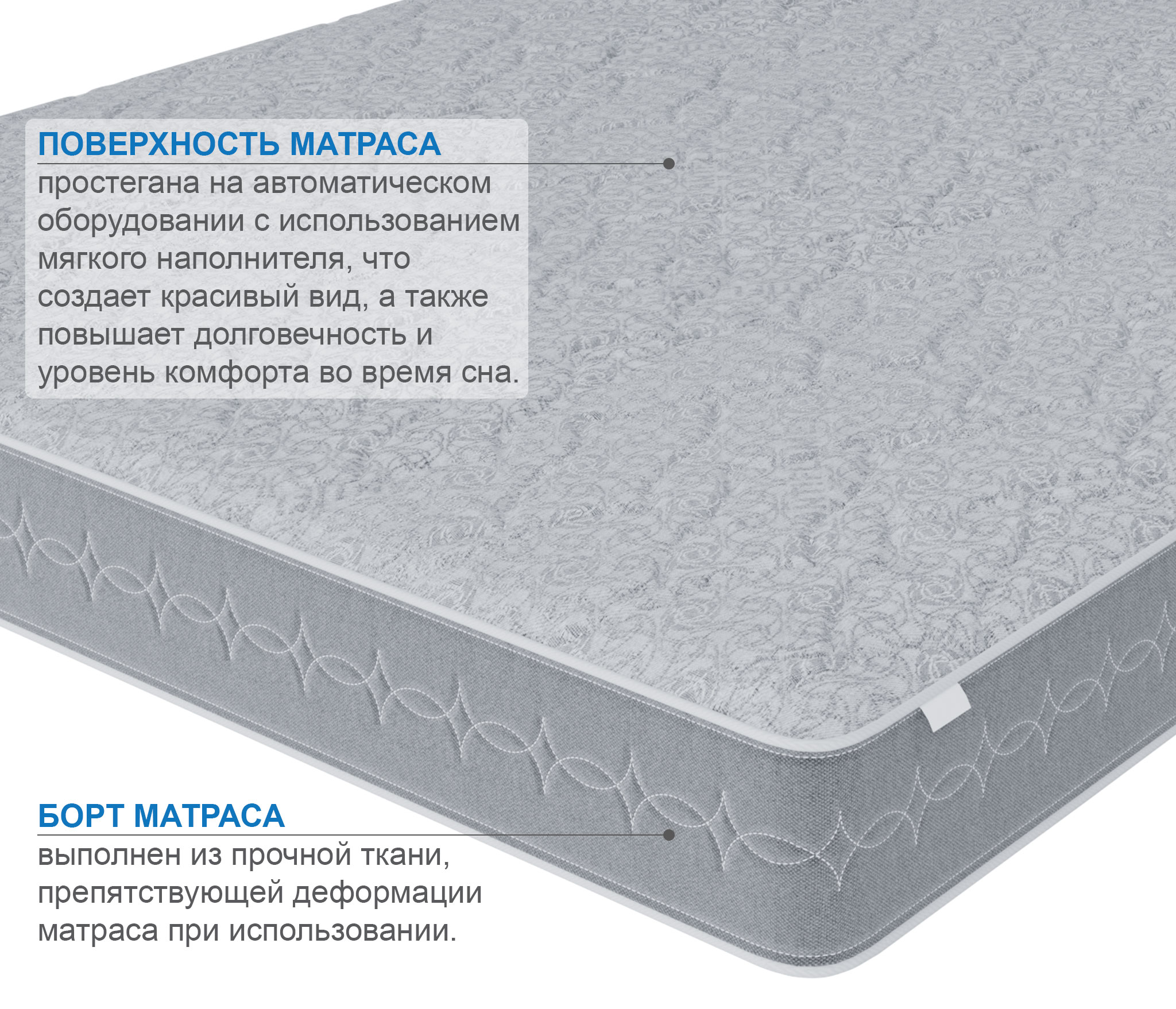 Классический матрас на основе блока независимых пружин, обладает средней жесткостью и хорошей поддержкой позвоночника. Блок пружин защищается термопрессованным волокном, на которое с обеих сторон блока кладется латексированный кокос, придающий матрасу необходимую жесткость и равномерно распределяющий давление. Чехол матраса выполнен из плотного жаккарда не поддерживающего горение, который стегается на 15 мм пене и слое синтепона плотностью 500 гр/м2, данное сочетание придает матрасу необходимую мягкость и комфорт. При выборе матраса следует помнить о том, что любой матрас не отвечает за правильность положения головы и шеи, их здоровье зависит от правильно подобранной ортопедической подушки. Для увеличения срока службы матраса рекомендуется его использование с защитным чехлом AquaStop.