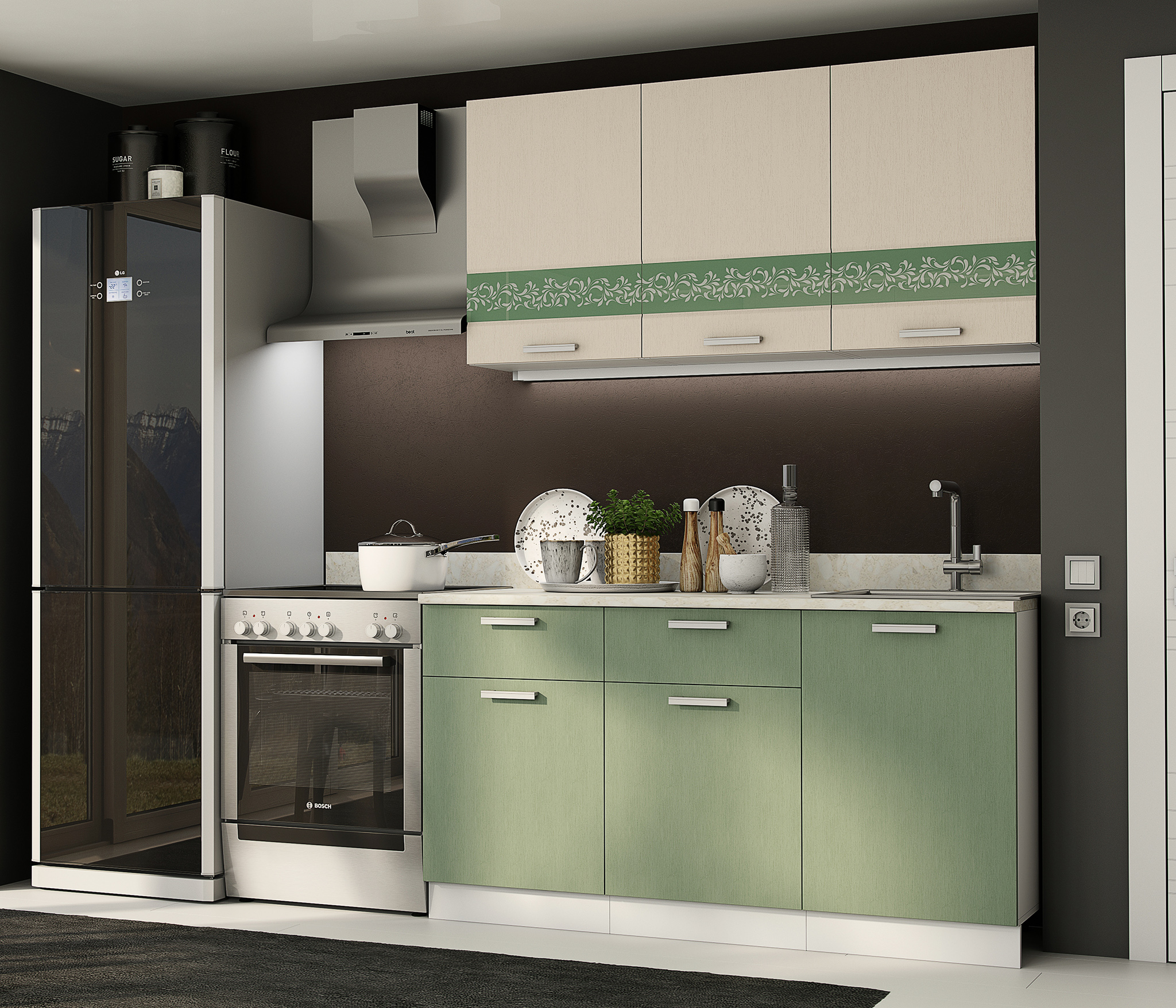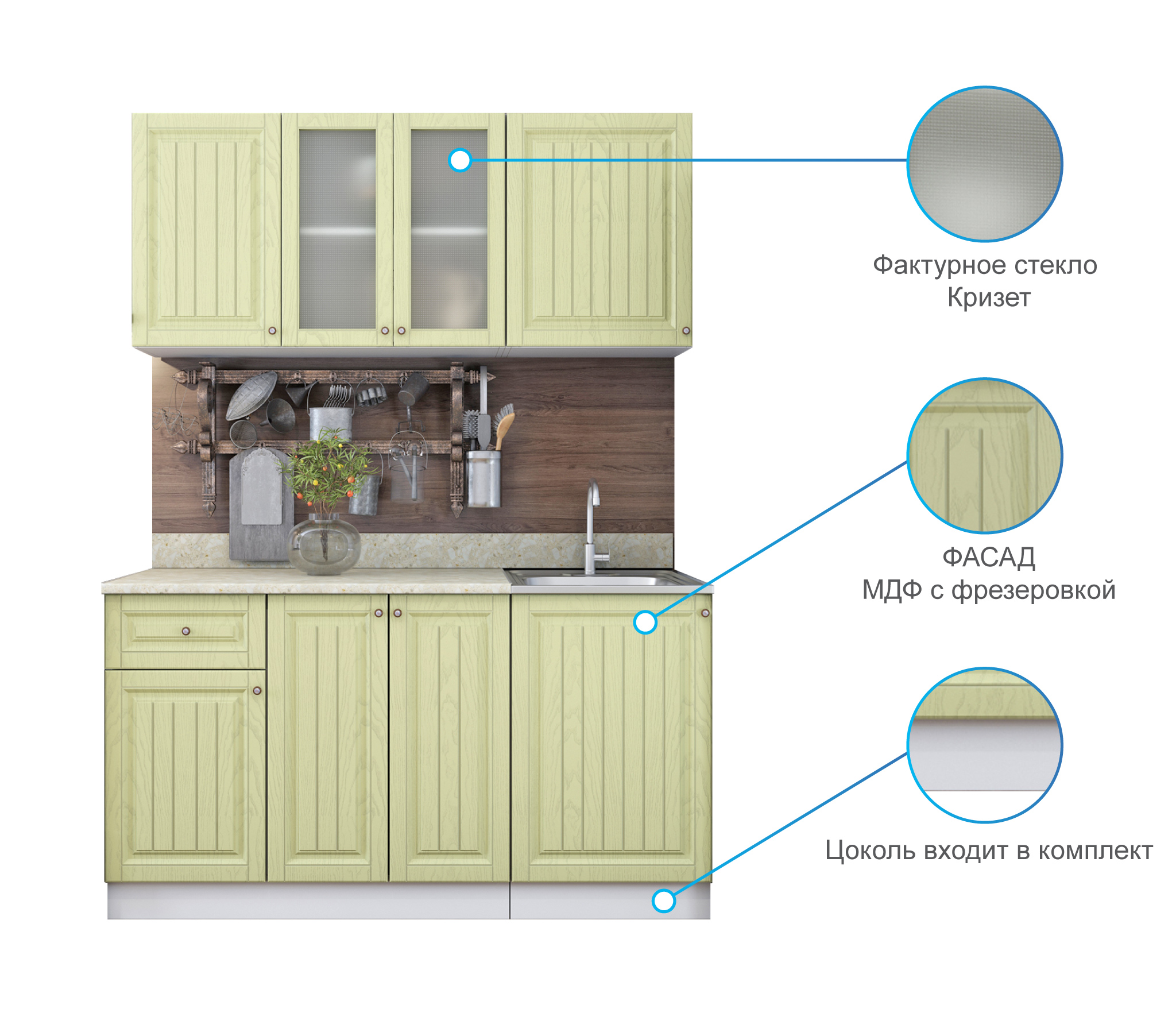 Кухня Хозяюшка 1,5 м Фисташка МДФ                                        Код R0000244914