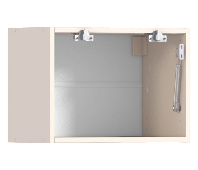 Компактная полка для установки над вытяжкой. Один из важных элементов удобной кухни. Хороший способ использовать даже небольшое пространство над вытяжкой. Полка собрана из качественной прессованной древесины. В комплекте качественные механизмы для дверцы, которая будет открываться вверх.
