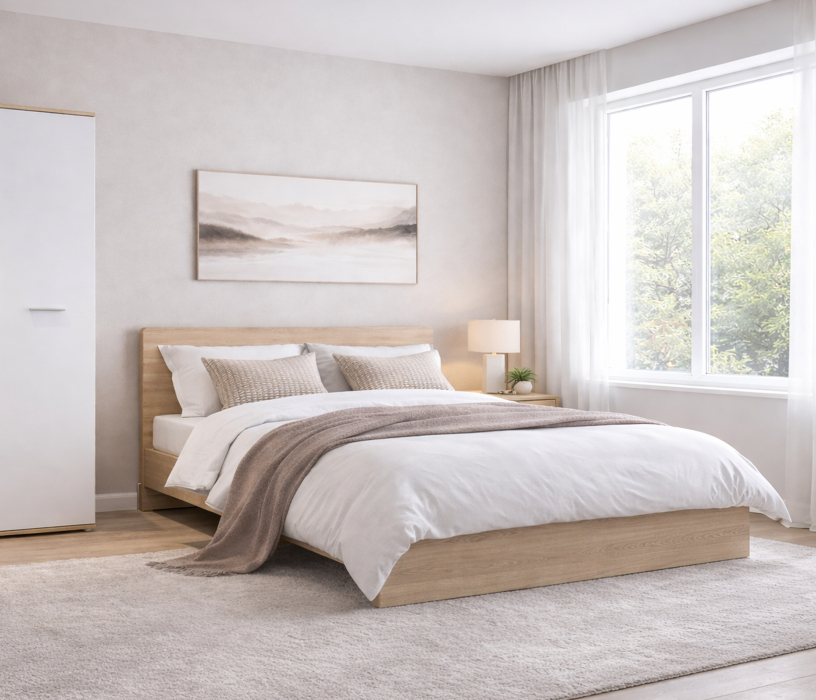 Кровать «Мамбо» – симпатичная и комфортабельная модель. Спальное место 160х200см. Модель выполнена из КДСП. Благодаря корпусу с текстурой под дерево и белым фасадам тумба может с успехом использоваться и в классических, и в суперсовременных интерьерах.