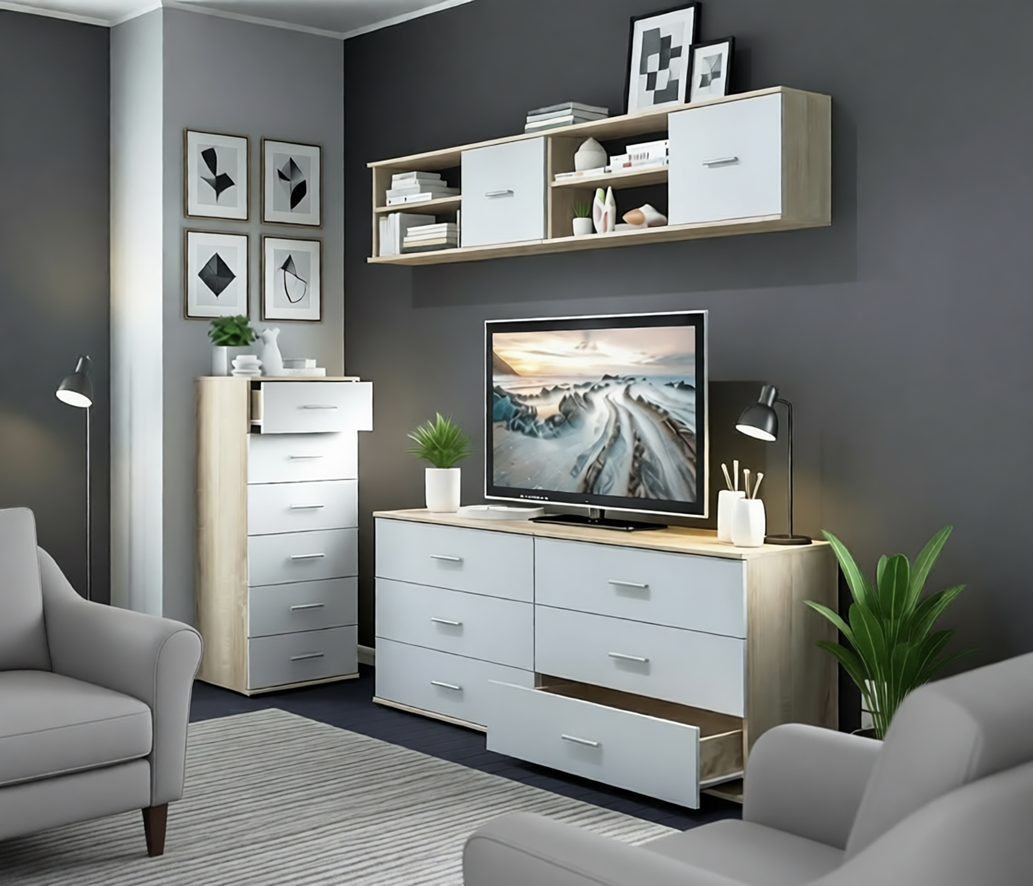 Комод Мамбо СБ-2540 (Белый/Дуб Сонома)