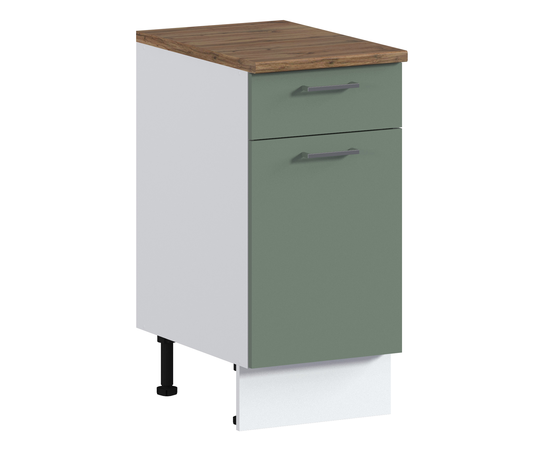 - один нижний шкаф на 800мм с распашными фасадами, стол под мойку на 800мм(без столешницы) и стол на 400 с 4 выдвижными ящиками - общая ширина 2000. Высота 840мм. Глубина 450мм.