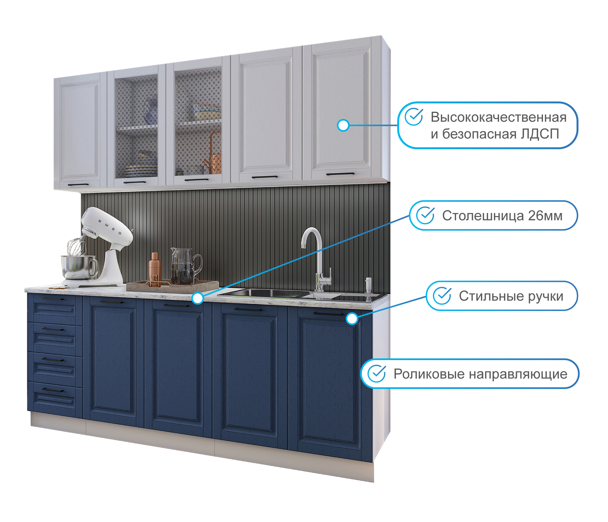 Отзывы о Столплит Кухня Вита 2,0 м Белый/Индиго МДФ Белый/Синий