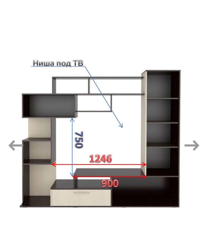 Размер ниши под ТВ (Шхв) на стене: 1246 х 700 мм.