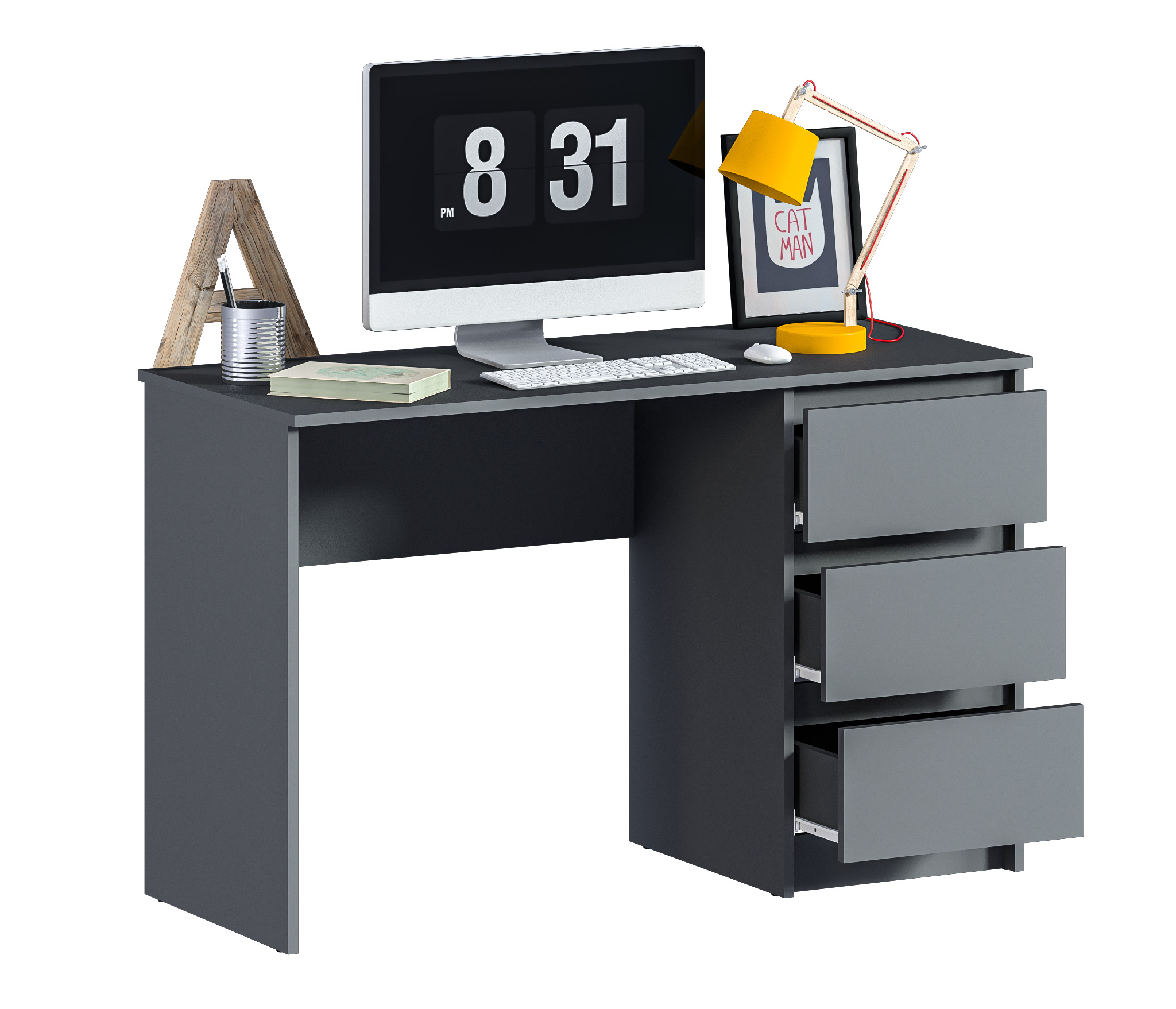 Стол Леон СБ-3336 – продуманное и комфортное рабочее место. Он может занять достойное место в кабинете, комнате школьника или студента, а также в офисе. Габариты стола Леон – ширина 119, высота 75 и глубина 50 см. Под рабочей поверхностью расположена тумба с ящиками для хранения разных мелочей.БикЮМинималистичный декор, отсутствие ручек и нейтральный цвет стола позволят разместить его в любой интерьер. Также вы можете дополнить письменный стол Леон комодами одноименной коллекции. Выполнен комод из высококачественного КДСП.