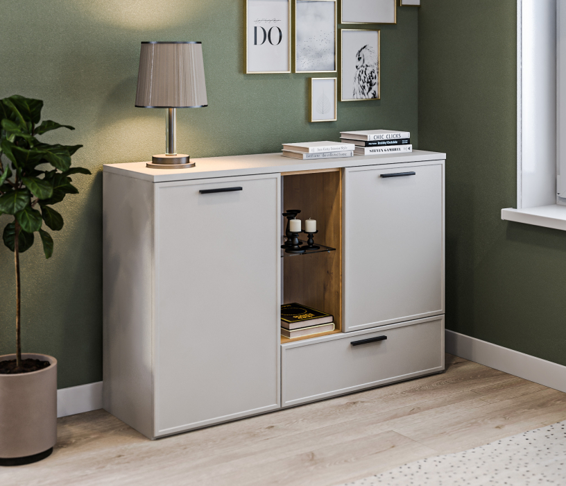 Отзывы о Столплит Комод Милан СБ-3264 Серый,Дуб Гамильтон/МДФ Светло серый Серый,Дуб Гамильтон/Светло серый