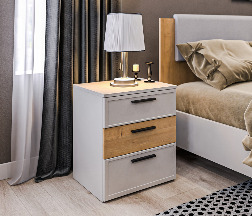 Тумба с ящиками Милан СБ-3295 Серый/Дуб Гамильтон,МДФ Светло серый (Серый,Дуб Гамильтон/Светло серый)