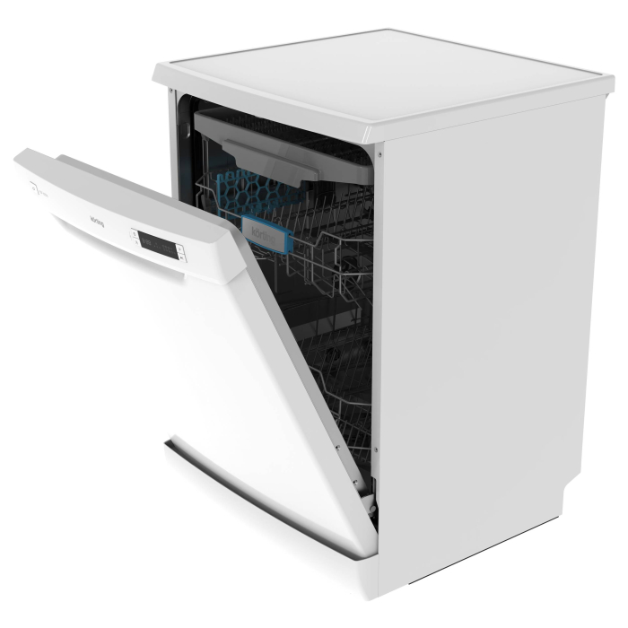 Отдельност., 60 см, А++/A/A, электронное управление, дисплей с LED индикацией выбранной программы, 8 программ, 14 компл., автоматическая программа, третья корзина для столовых приборов и мелкой посуды, функция интенсивной мойки для особо грязной посуды, таймер отложенного старта до 24 часов, половинная загрузка, защита от протечек, ур.шума 49 дБ, тестер для определения уровня жесткости воды в комплекте, цвет - белый.