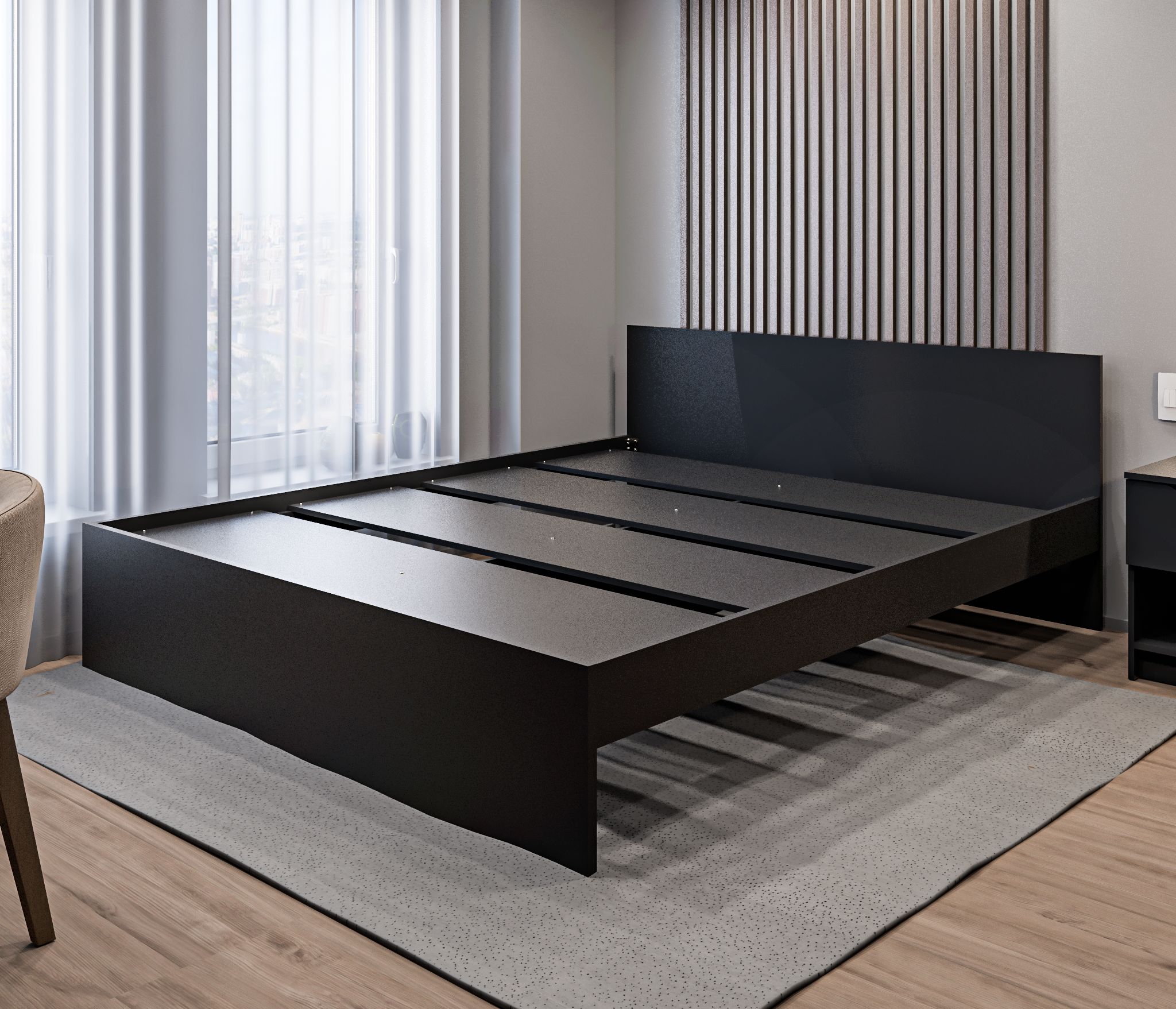 В комплект кровати входит основание. Спальное место размером 1800 х 2000 мм обеспечивает достаточное пространство для комфортного сна.