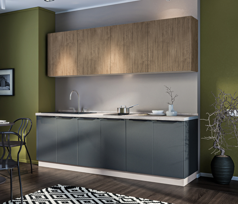 Регина Кухонный гарнитур Диамант серый/Джаз МДФ Акация светлая 240 Код 00000310362