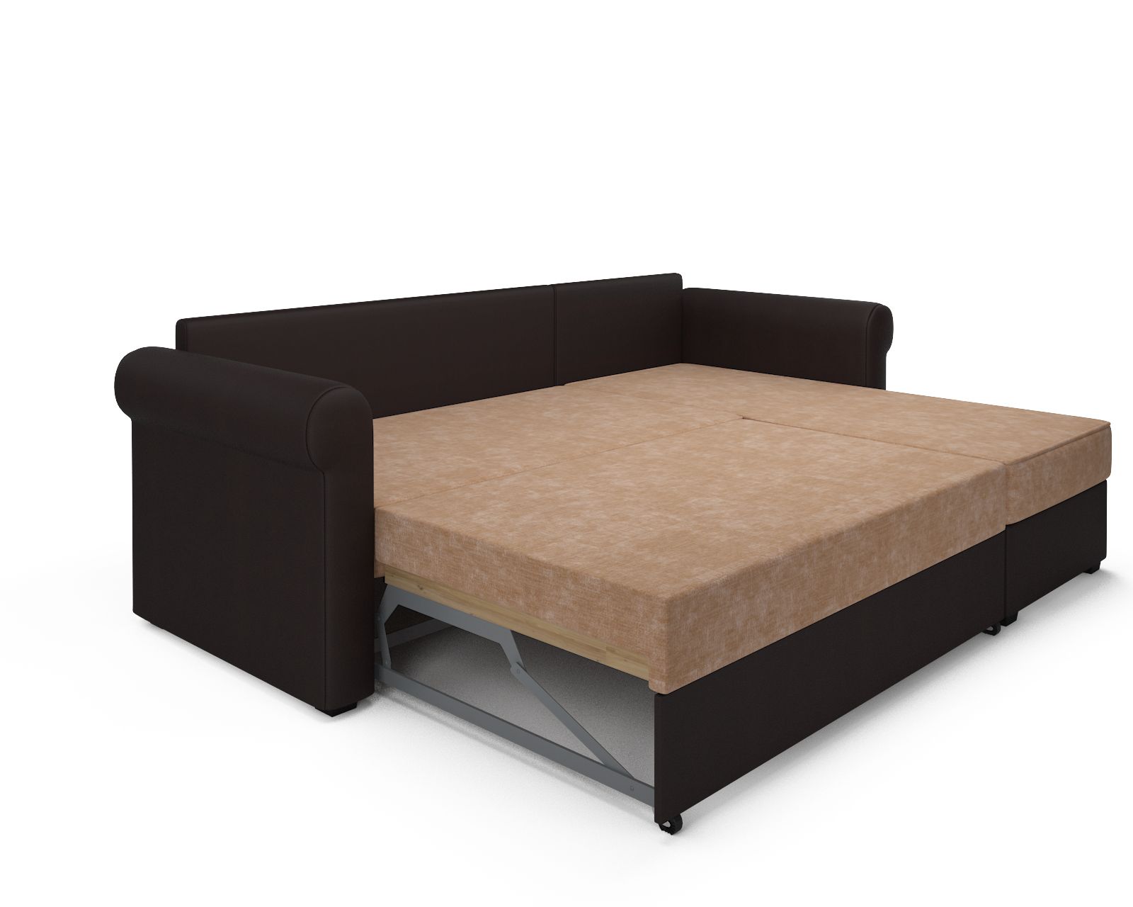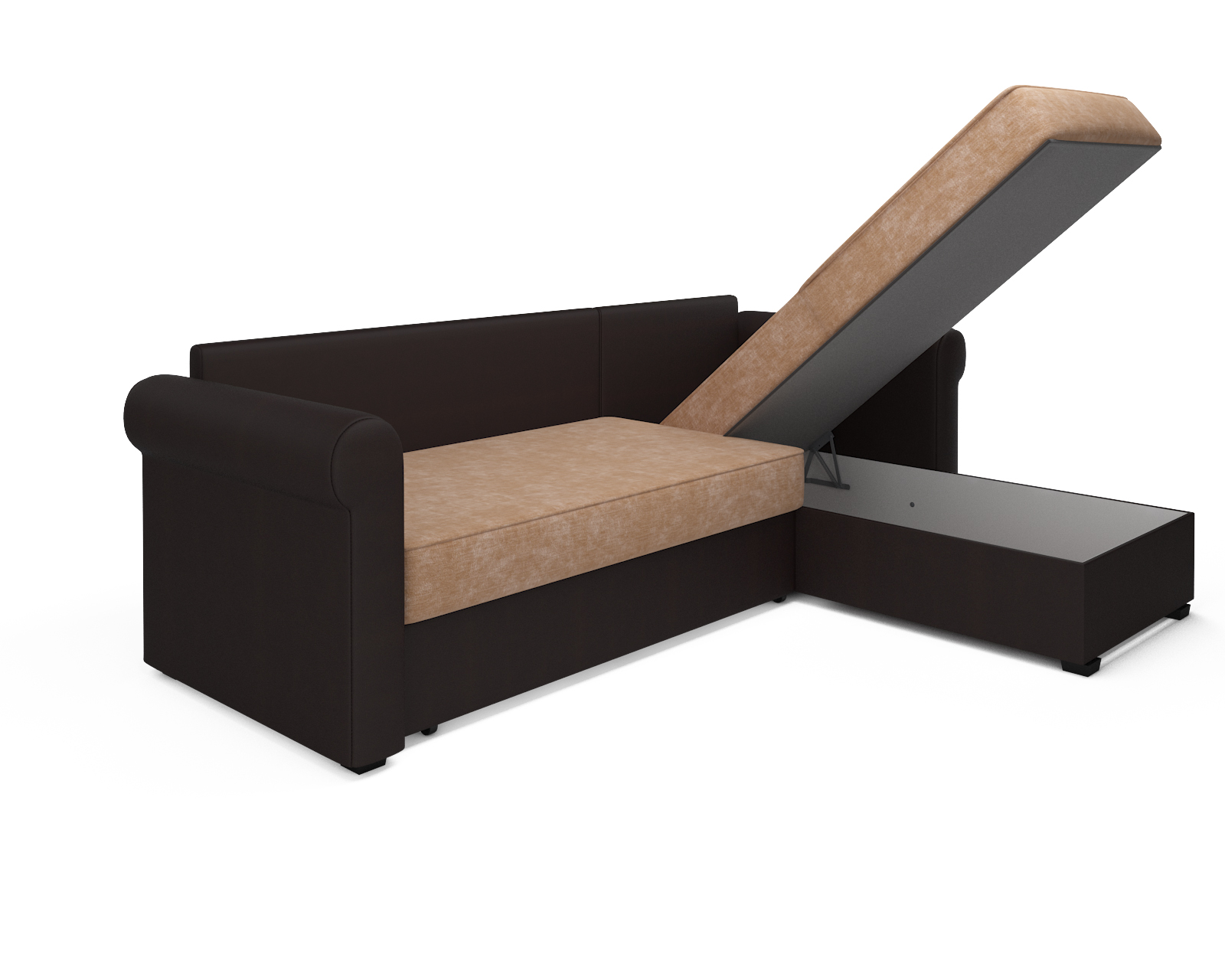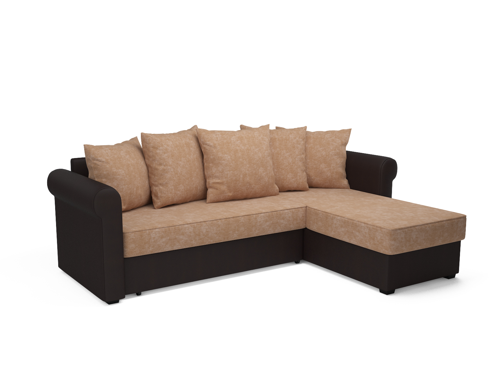Угловой диван Стивен, микровелюр и экокожа (бежевый/темно-коричневый)