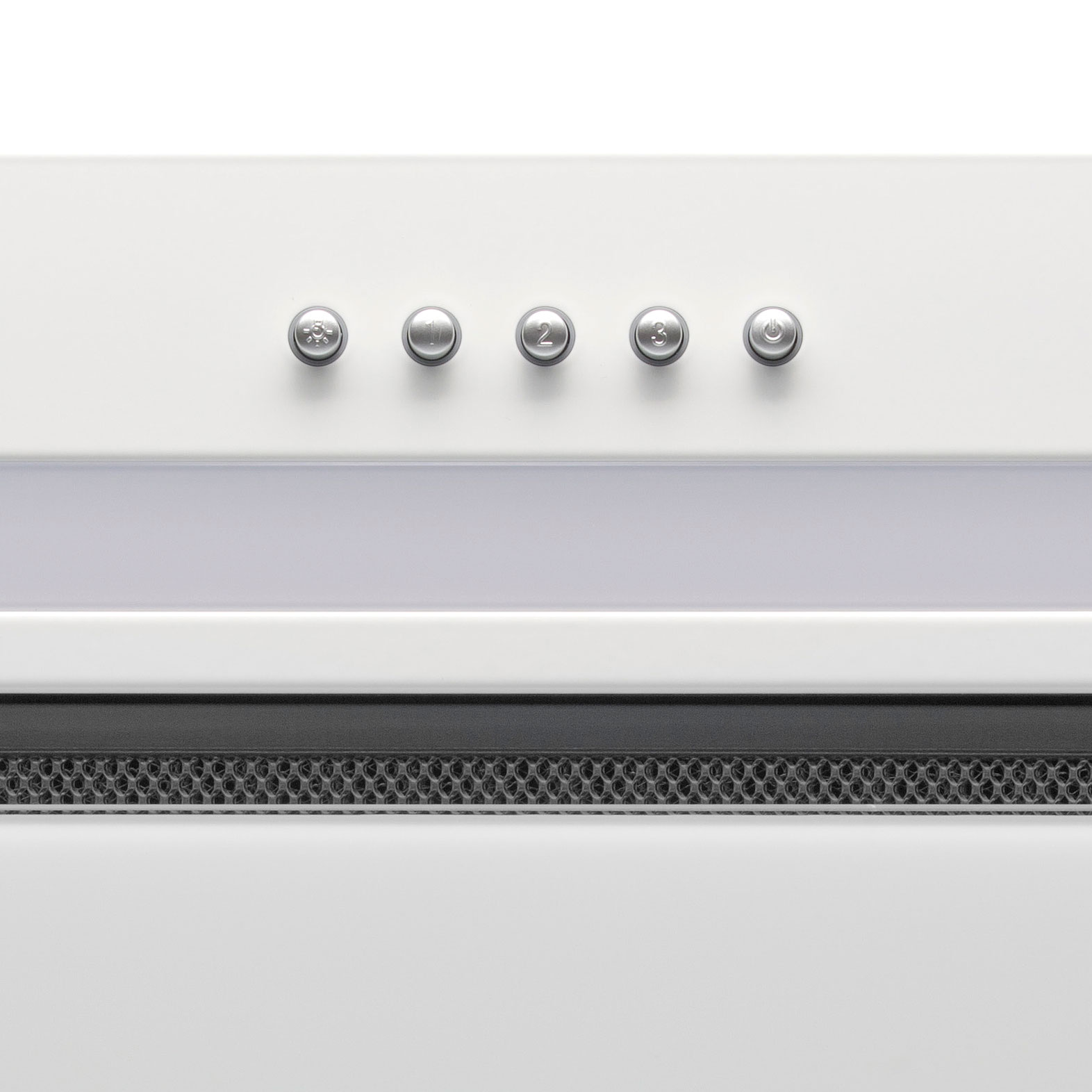 • Фасад вытяжки полностью закрывает нижнюю полку – это позволяет монтировать вытяжку в кухонные шкафчики вместо нижней полки (дна). Удобная система монтажа.
