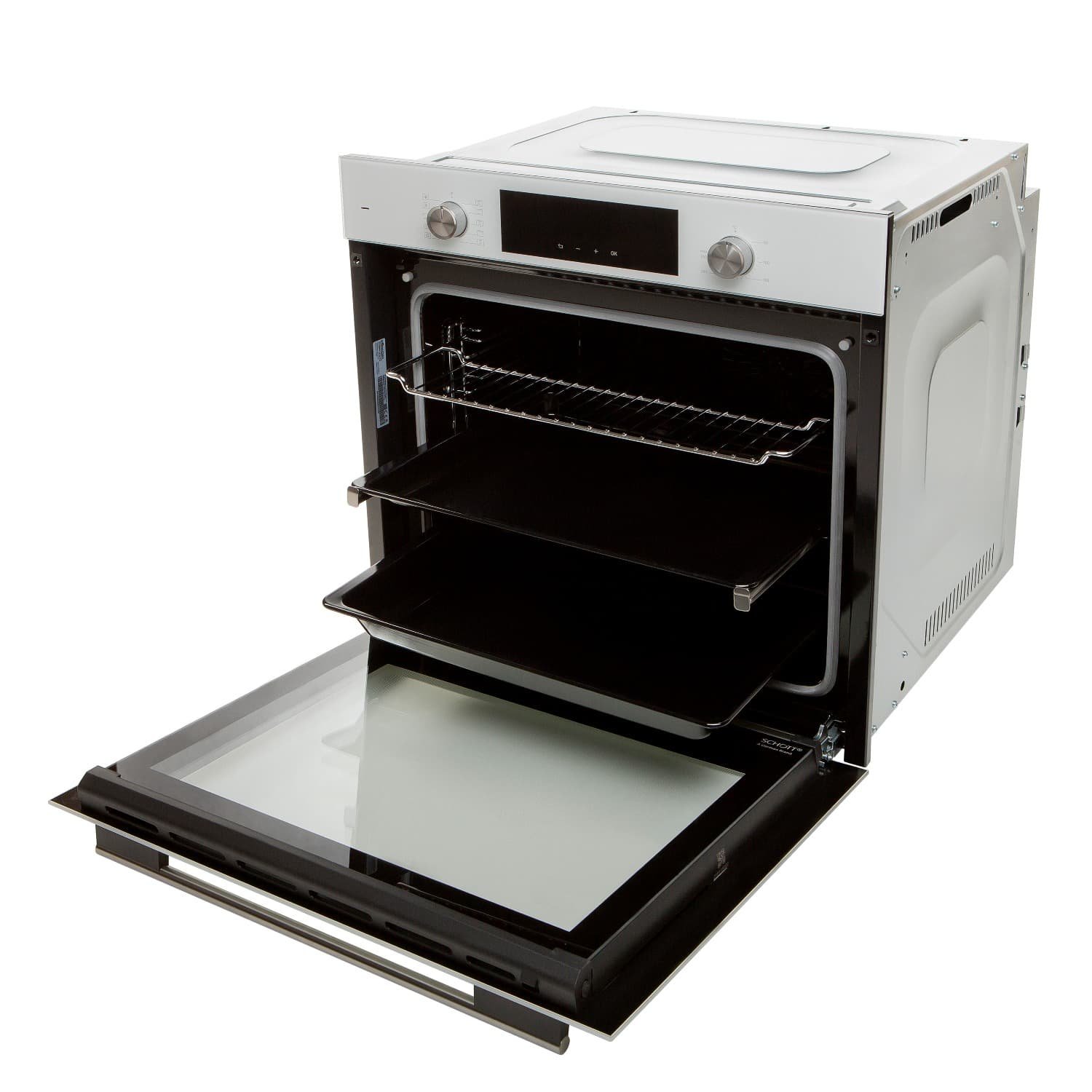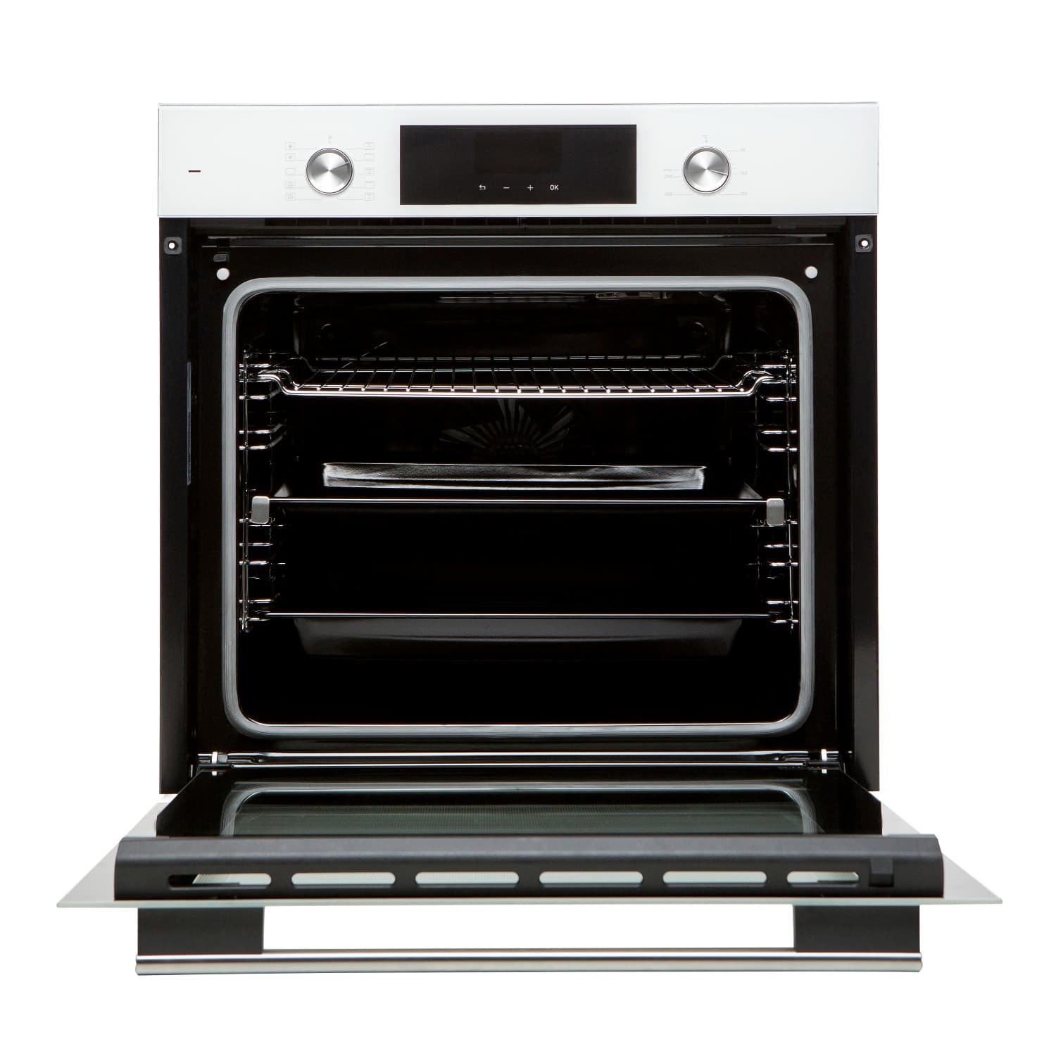 • Материал фасада: Узкая стеклянная панель управления + стеклянная дверца духовки из кристально белого стекло от немецкого производителя Schott Ceran