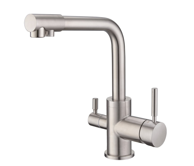 Данный кухонный смеситель двух-аэраторный имеет однорычажное управление и удобную ручку для регулировки подачи воды. Смеситель EMAR-3003NS сделан из латуни, покрытие под сатин. Подойдет в любые кухонные раковины, смеситель универсальный.