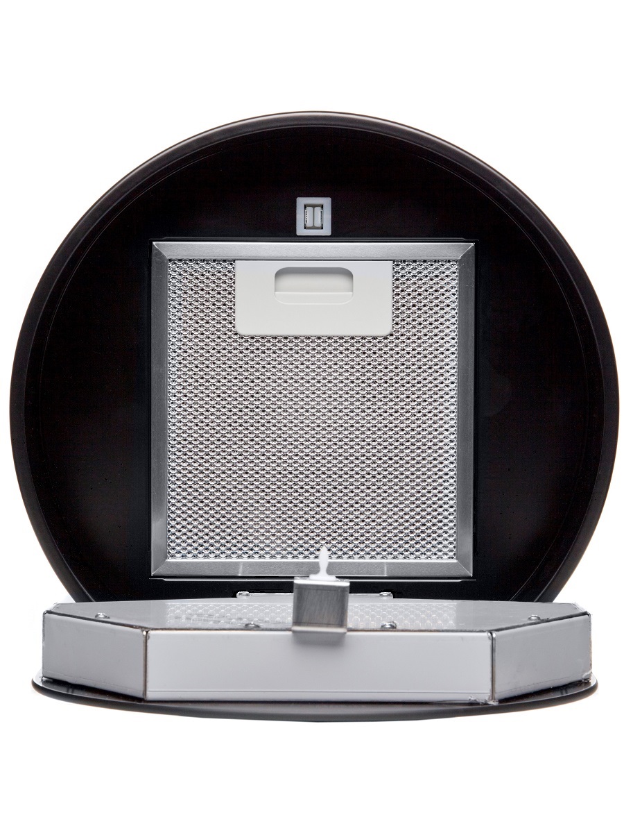 + Вытяжка выполнена в форме цилиндра. Геометрические формы повсеместно используется в современных дизайнерских проектах, они ассоциируются с простотой и лаконичностью, привносят в помещение гармонию и стиль. Стильное сочетание стали и блеска закаленного стекла создают ощущение легкости прочной конструкции. Декоративный стеклянный люк скрывает алюминиевый, жироулавливающий фильтр, придавая завершенность композиции