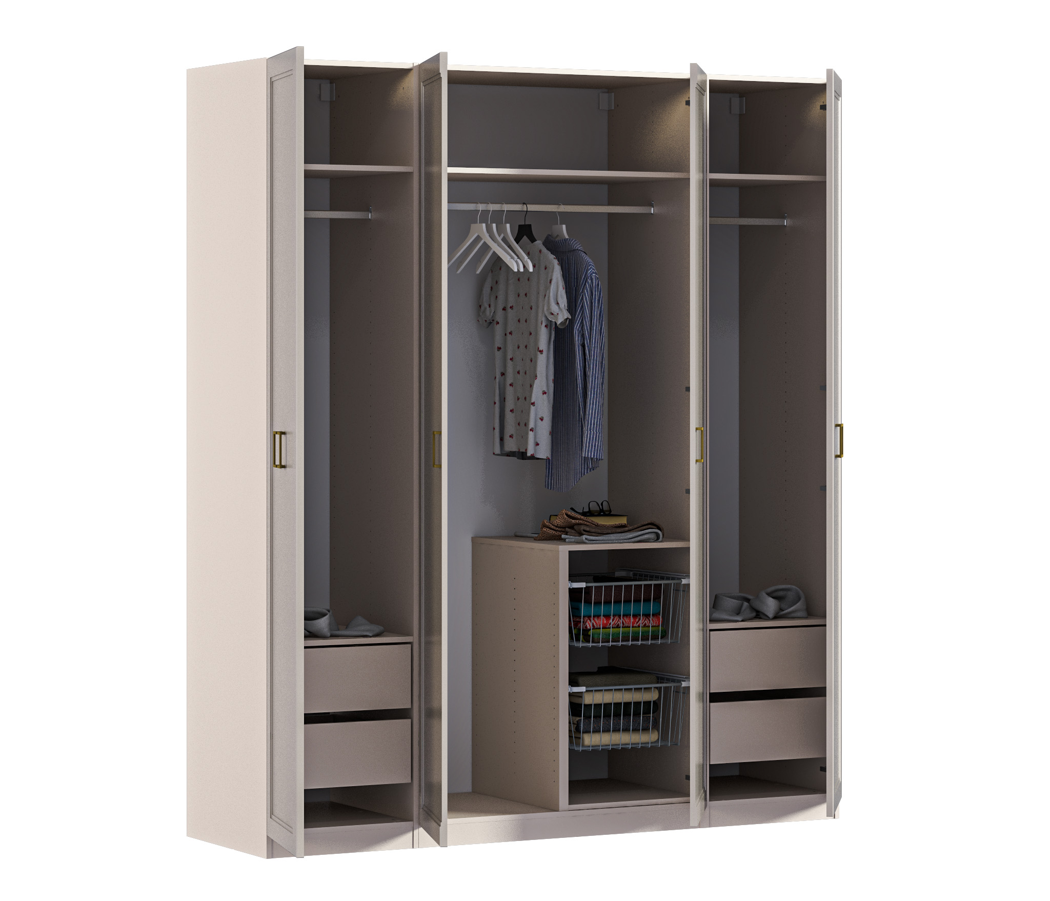 Шкаф Макс 4х дверный с фасадами Ассоль Кашемир серый                                        Код 00000316570